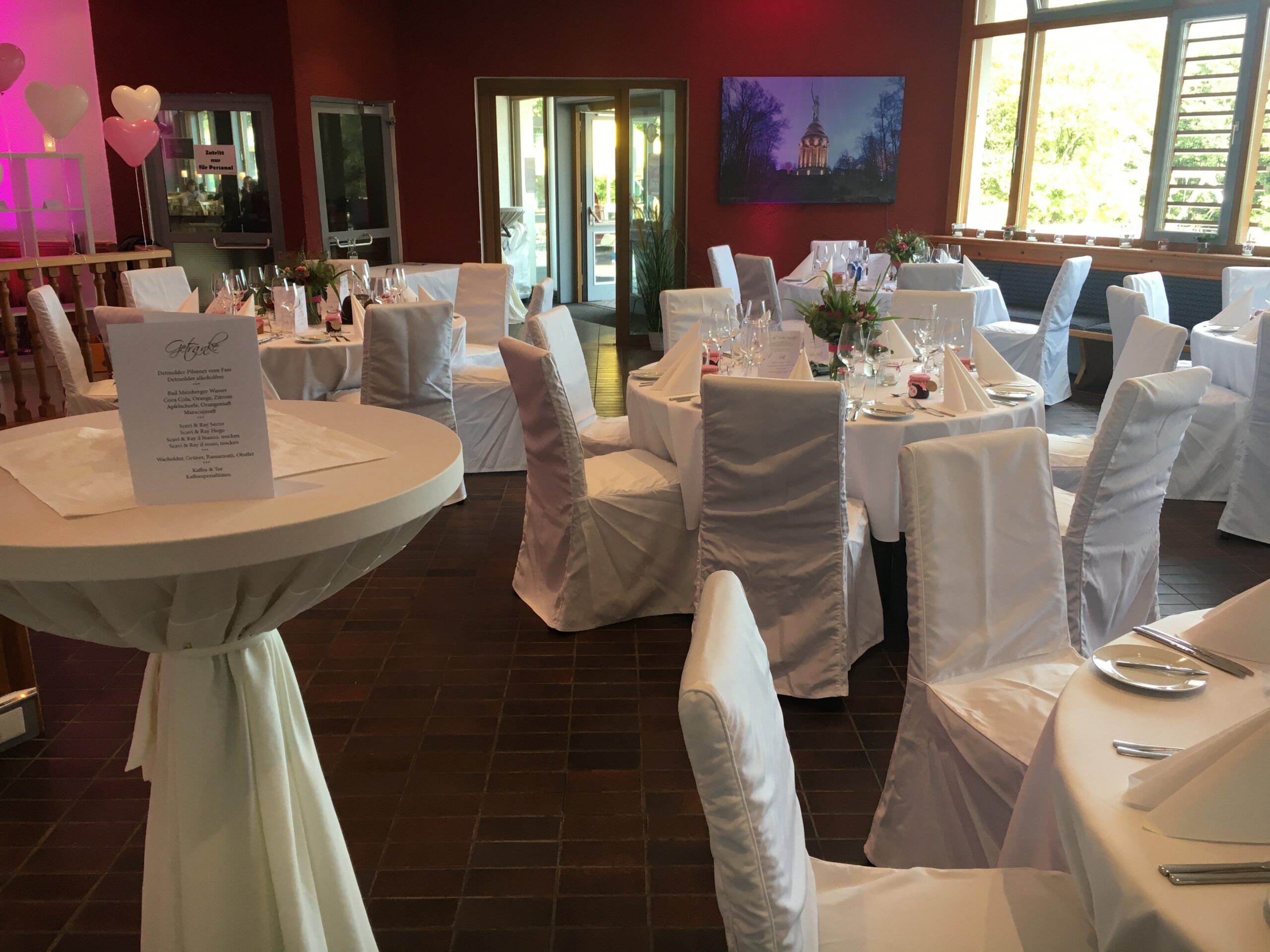 Für Feierlichkeiten oder Tagungen mit bis zu 60 Personen bietet sich die abgetrennte Cheruskerstube an.