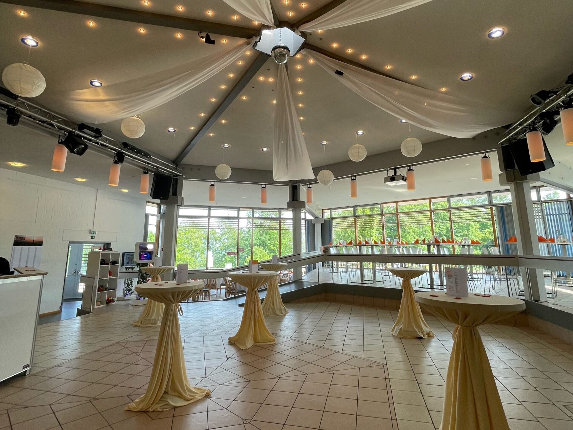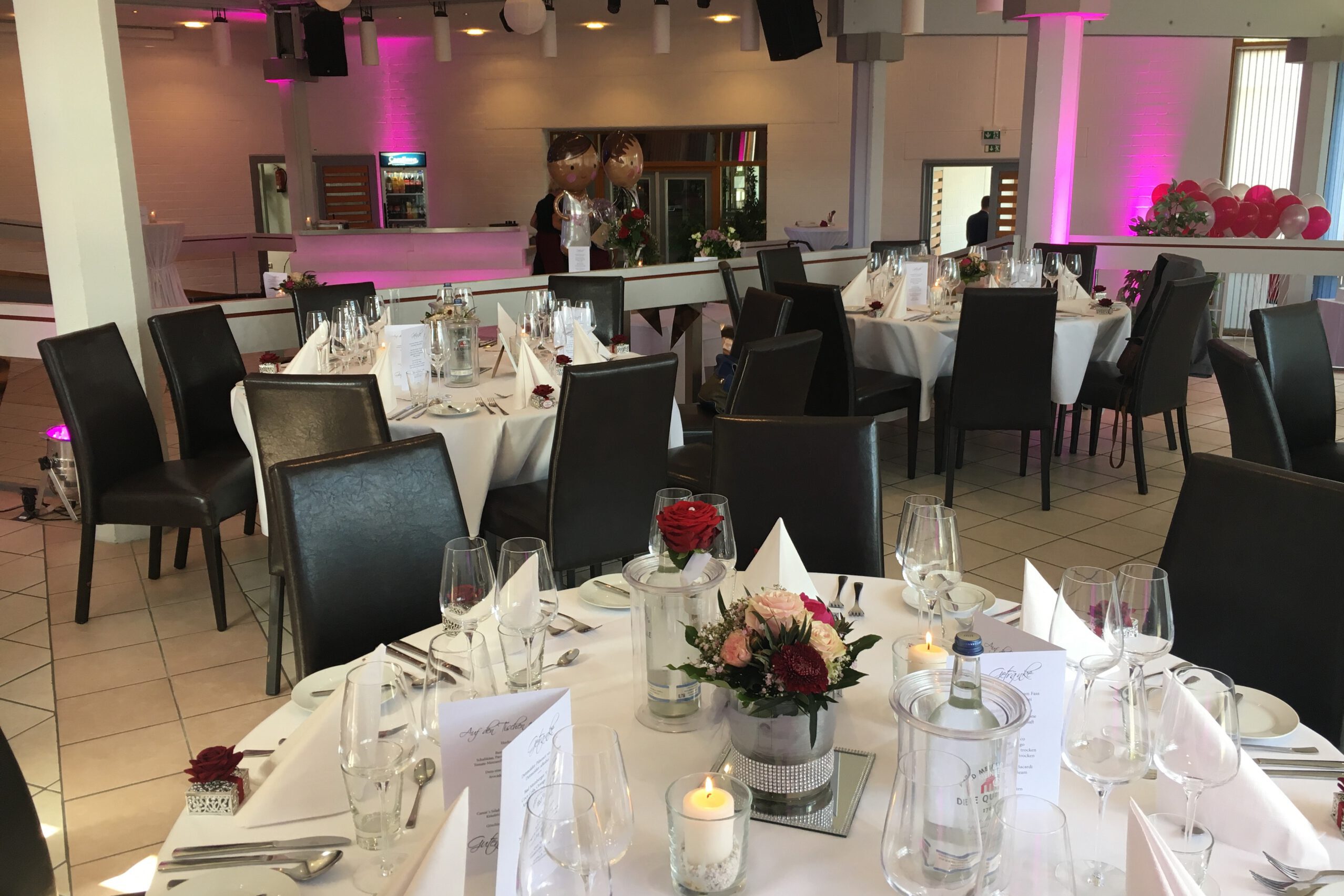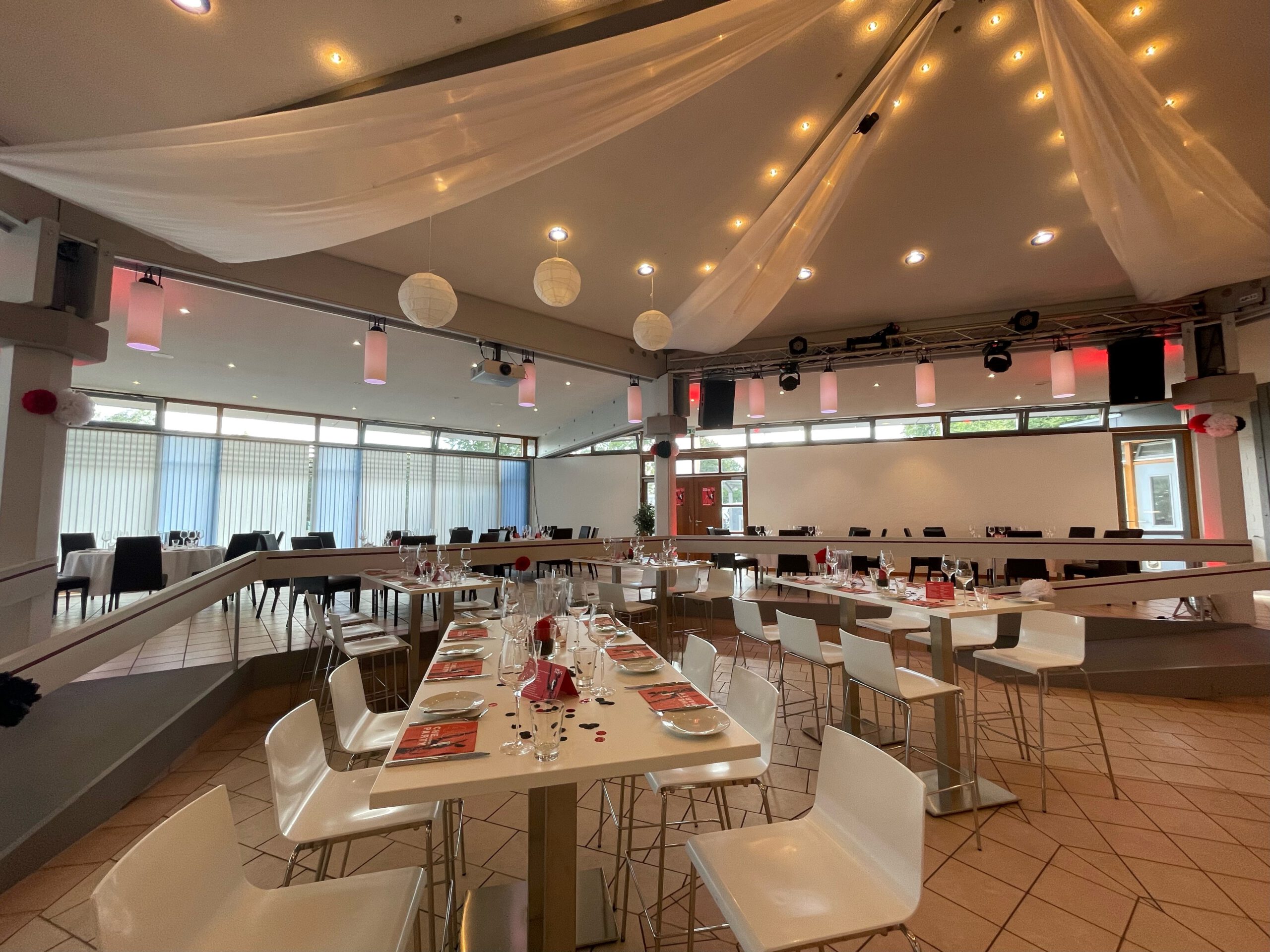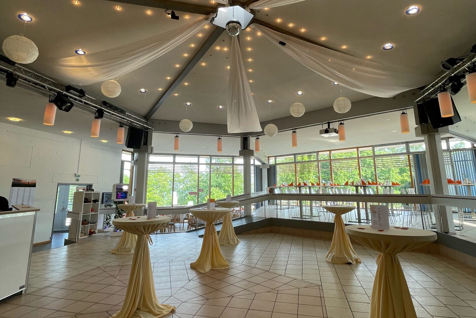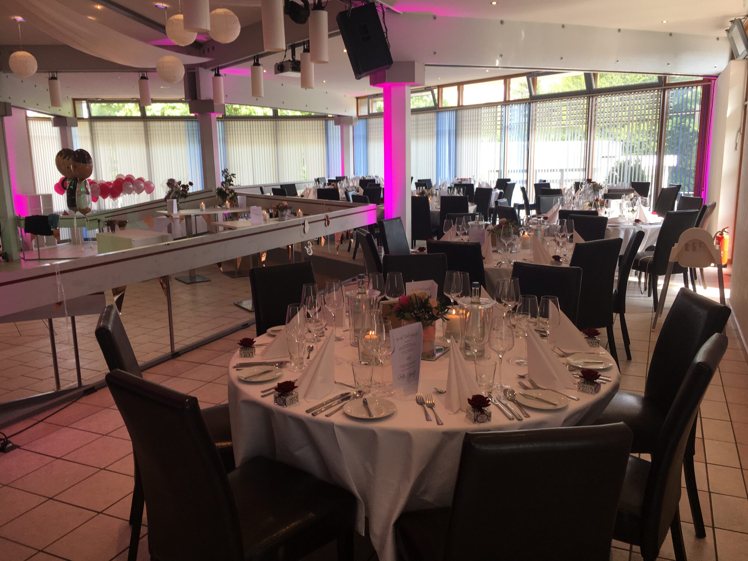 Unser Saal, der Platz für bis zu 200 Personen bietet, ist die ideale Location für größere Hochzeiten, Geburtstage oder andere Veranstaltungen.